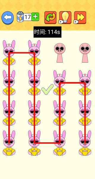 第二关只需连接浅色兔子,深色兔子无需理会,画线过程中要注意避开它们。