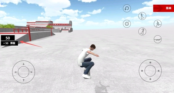 1、启动游戏并进入后,通过滑动屏幕左右两侧的虚拟摇杆来操控角色移动,点击界面右上角的按钮即可让角色完成各类特技动作。