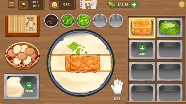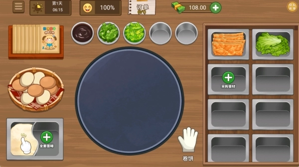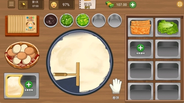 3、玩家需及时补充食材,食材不足会导致客人评价降低,可自由尝试多种烹饪方式,以快速制作出完美的煎饼。