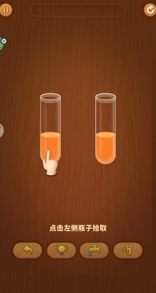 1、刚进入游戏时,建议先熟悉基础操作:点击盛有水的容器,接着点击想要倒入的目标容器,就能完成倒水动作。在初期关卡中,不妨先仔细观察,找出那些最容易归位的水,优先对这部分水进行操作。