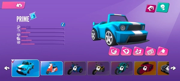 2、车辆类型包含现实跑车和科幻摩托,可通过比赛奖励或商城购买获得,还能进行性能升级与外观涂装定制。
