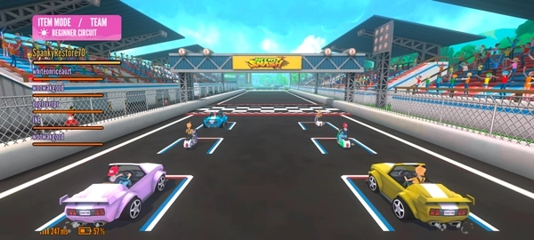 《终极街机赛车》是一款极具刺激感的多人赛车游戏,巧妙融合了竞速、漂移与道具对抗三大核心玩法。玩家可驾驭多款风格独特的赛车,在全球玩家共同参与的实时对战中,尽情秀出酷炫的漂移技巧;同时还能利用丰富多样的道具,既能干扰对手的比赛节奏,也能为自身提供防护,所有玩家的最终目标,都是全力冲刺,争夺冠军的荣誉宝座。