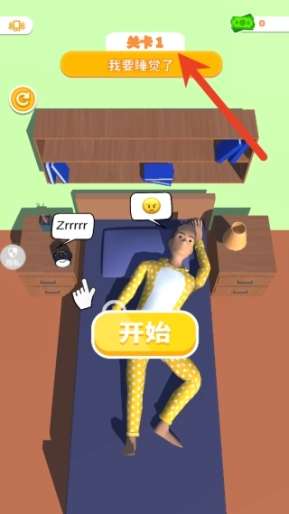 1、进入游戏后,先挑选关卡并熟悉该关卡的赖床任务,留意有哪些会打扰你睡眠的角色或物品出现,提前做好应对的准备。