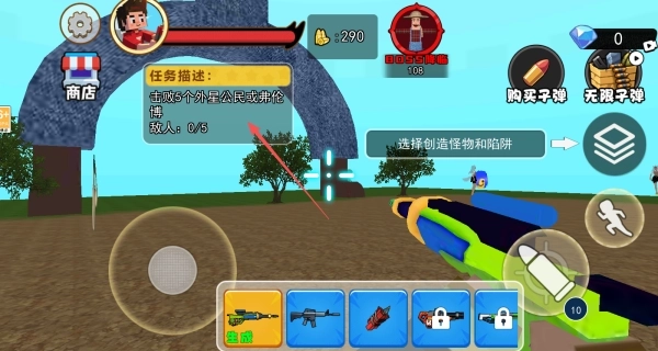 1、进入游戏之后,查看左上角的任务描述:击败5个外星公民或者弗伦博。