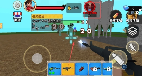 3、点击下方的武器,在地图当中与敌人进行作战。