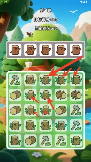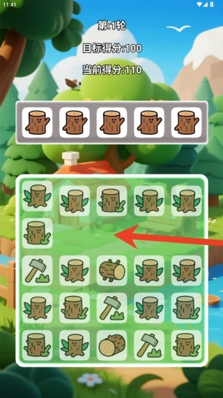2、认真留意当前关卡里散布的森林相关元素(像树桩、斧头、树枝这类),去找出相邻位置或者同一区域内类型相同的方块。