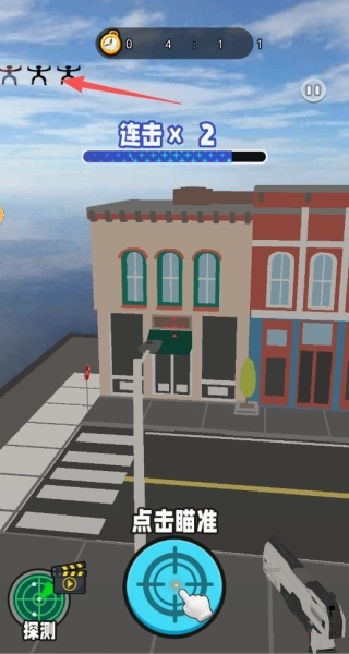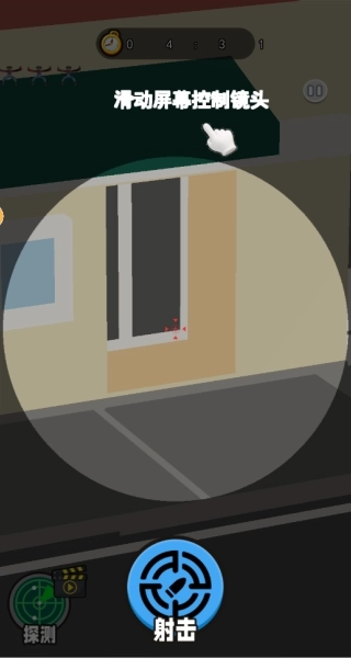 1、进入关卡后,通过滑动屏幕来操控镜头,切换不同视角以搜寻狙击目标。
