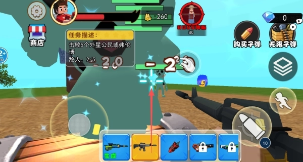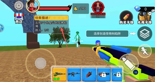 2、若要击杀外星公民,当地图中不存在目标时,需先完成创建操作,再执行击杀步骤。