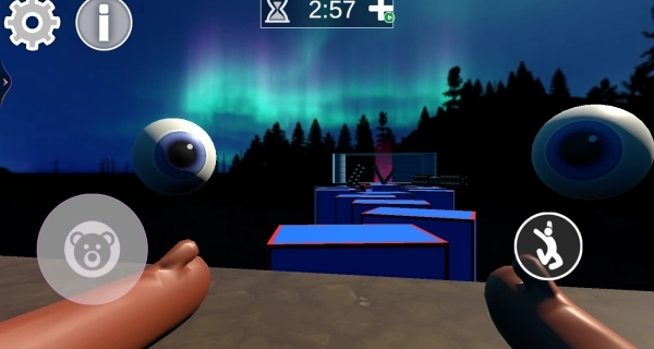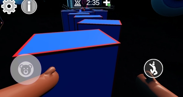 2、通过虚拟摇杆控制小熊移动,配合跳跃动作跨越障碍物,在倒计时结束前完成区域探索目标