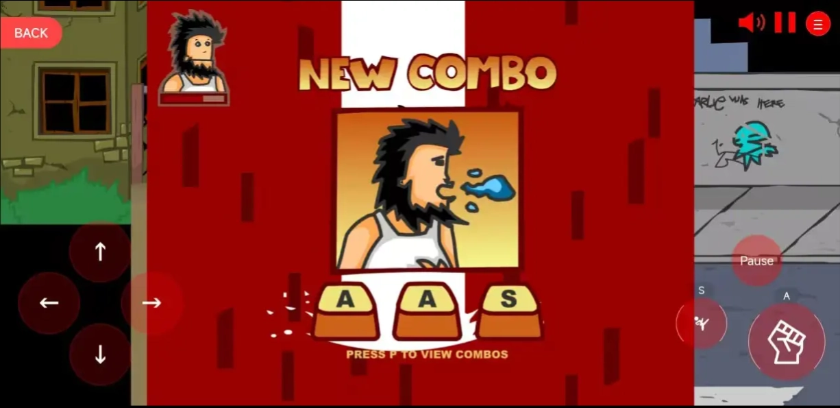 3、通过键盘方向键来操控人物移动,A键的功能是出拳以及拾取物品,S键则对应脚踢动作。