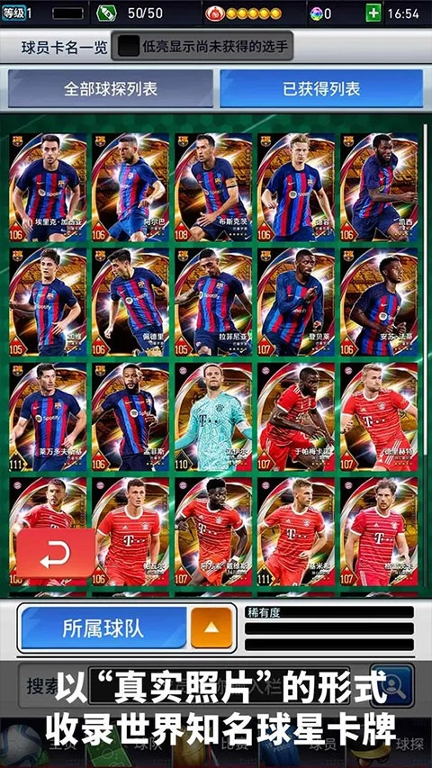 游戏中收录了超1000位球星的真实照片卡牌,授权覆盖欧洲主流联赛的绝大多数顶级豪门,阿根廷、巴西、葡萄牙等国家队也已入驻游戏。