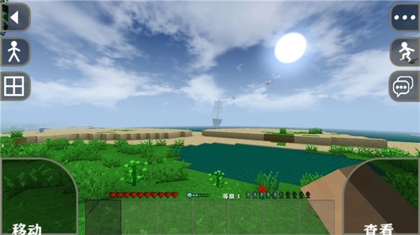 4、点击地面即可放置方块,长按并拖拽能对地形进行塑形;使用镐、斧类工具能够快速采集木材、石材和矿物。