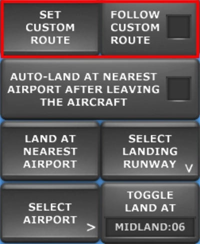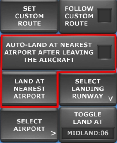 3、自动降落在最近机场:飞行过程中若离开飞机,系统将自动选择最近机场降落;也可在飞行时手动激活“在最近机场降落”功能。