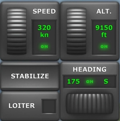 “稳定”(STABILIZE)模式会自动对速度与高度进行设置,“盘旋”(LOITER)模式则能使飞机保持当前的速度和高度进行旋转。