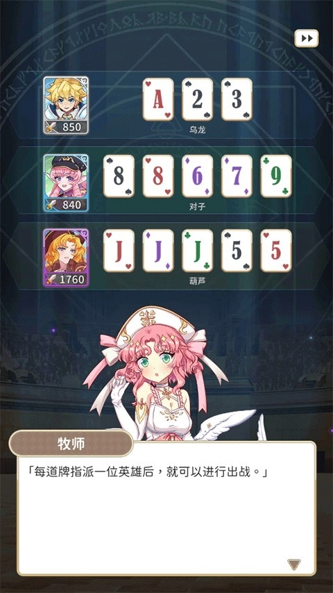2、每个阵型位置都可以搭配一位拥有独特技能的英雄出战。