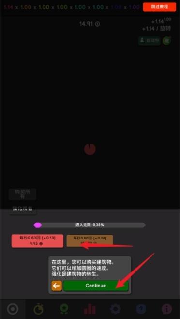 2、在这里,能够购买建筑物,这些建筑物可以提升圆圈的速度