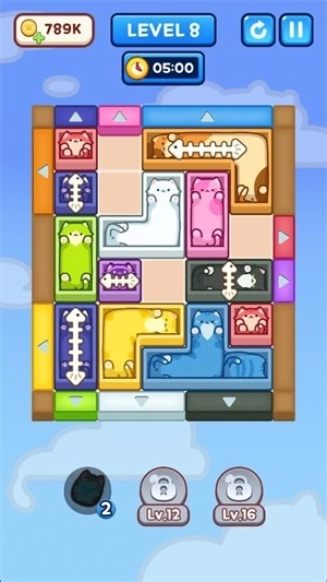 《猫咪逃脱》是一款围绕可爱猫咪展开的休闲益智解谜游戏。玩家需通过点击、滑动或拖动场景中各种形状与颜色的方块,借助方块的移动、旋转或消除来改变地形,从而为猫咪构建一条通向出口的顺畅路径。随着关卡的深入,不仅会出现更多颜色的猫咪,方块组合也愈发复杂,谜题设计亦从直观易懂逐步转变为需要提前规划多步策略的类型。