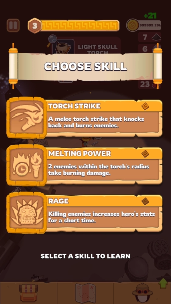 2、在战斗进程中提升等级,以此解锁全新技能与助推器!借助技能和特权强化你的英雄,让其速度更快、力量更强或是韧性更足,助力你在古墓中存活下来并赢得胜利!
