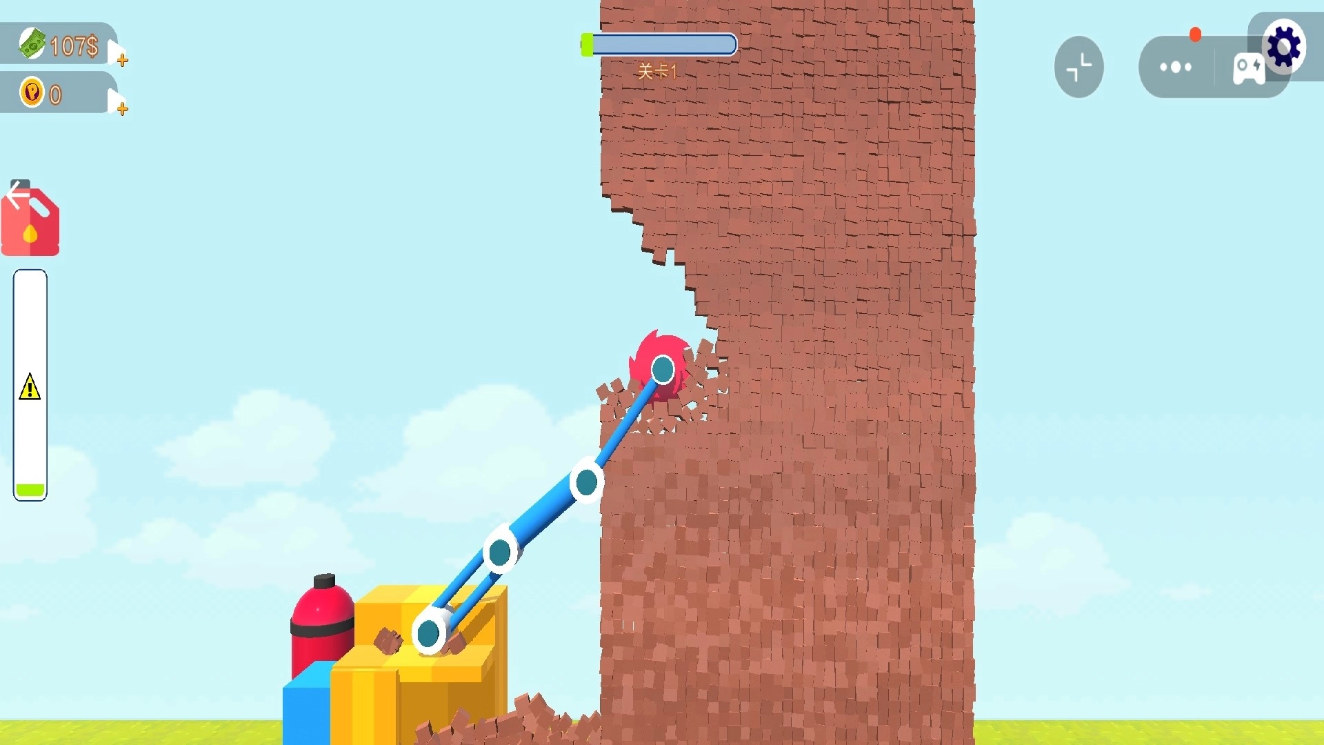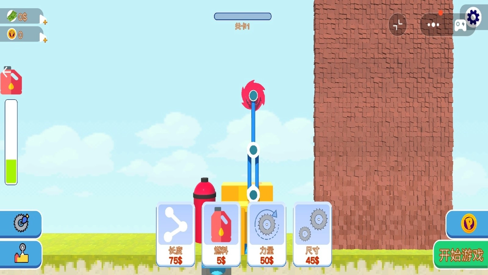 2.资源管理:成功拆除墙体后会掉落砖块类材料,这些材料能够在商店中兑换成金币。金币是升级齿轮动力、强度以及耐久度的唯一货币,因此需要对其进行合理规划与使用。