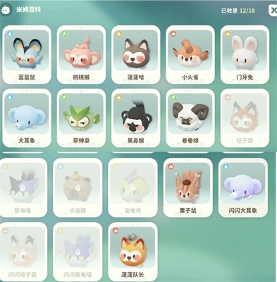 水系(蛋呈蓝色):蓝蓝鼠、大耳象、卡皮豚、闪闪大耳象;