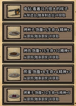 15、电钻、烤种子、烤肉、煎蛋、烤果子;