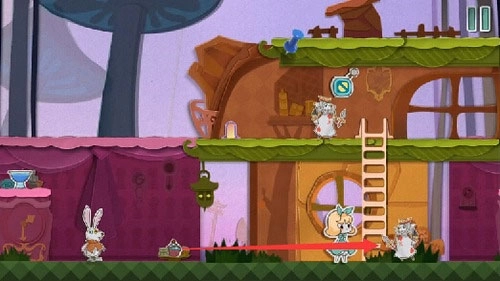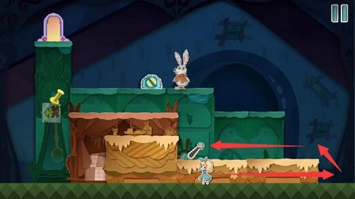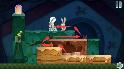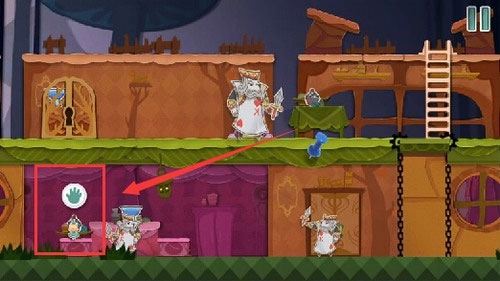 7、从高台上跳下来将老鼠打晕,然后将老鼠放到右边的齿轮动力机里面去。