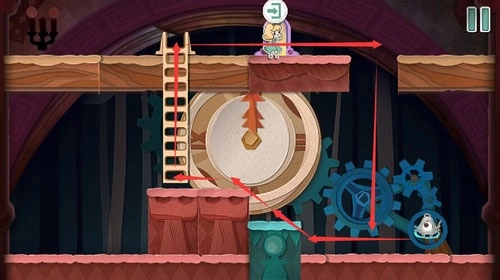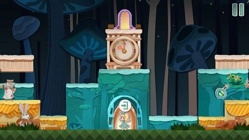 10、利用青色方块垫脚,进入时钟上方的门里即可顺利过关。