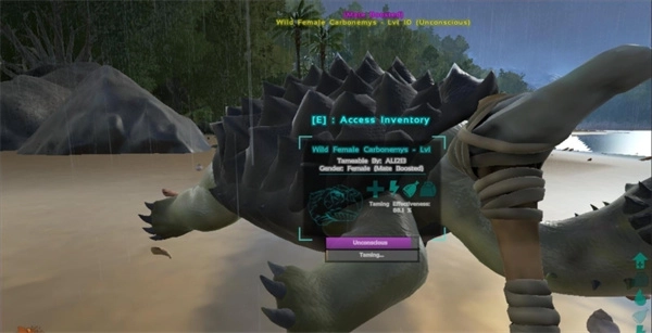7、当昏迷条即将耗尽时,可使用黑色果实强制恐龙进食,维持昏迷状态。一旦昏迷时间结束而驯服未完成,整个过程将失败,必须重新开始。