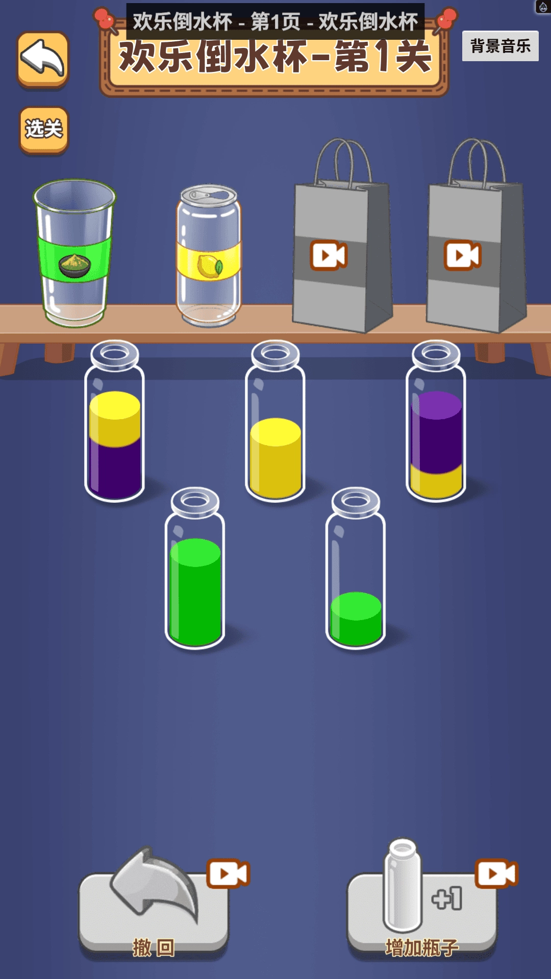 3.在欢乐倒杯这一关卡里,玩家需要完成的任务是对不同颜色的液体进行分类。