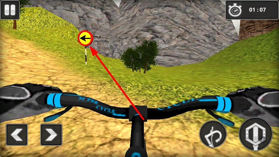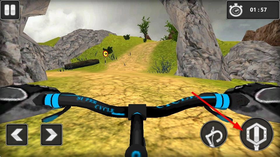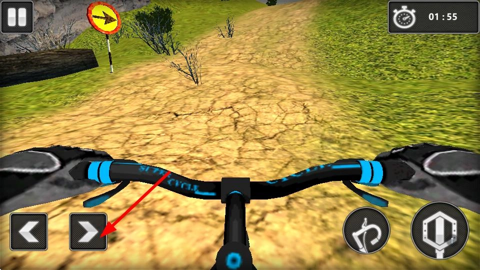 按下右侧的转向按钮,操控自行车向右转弯;当遇到弯道或者需要改变行进方向时,及时调整行驶方向,以保证沿着正确路线行进。