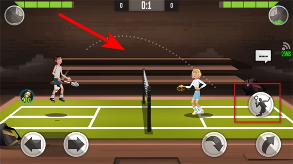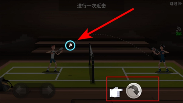 当羽毛球进入可击打区域时,点击近击按钮等对应的击球按钮,就能完成击球动作,每种击球按钮都对应着特定的击球方式。