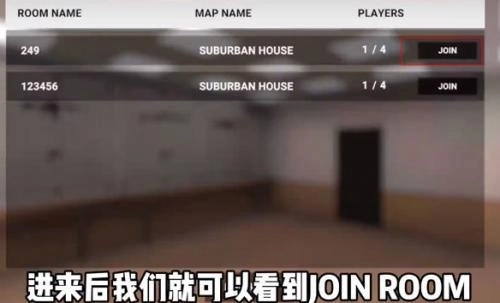 4、成功进入后,界面会显示【JOINROOM】选项,点击可浏览其他玩家创建的房间列表,并通过右侧的【JOIN】按键申请加入。