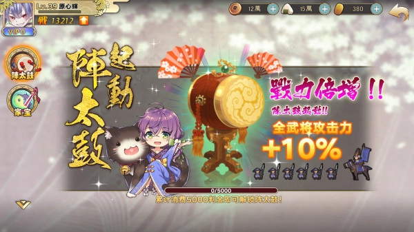 在“殿”中,你可以获取一系列全面提升战姬实力的成长资源,包括战鼓、式神、家宝、装备等多个方面。真正强大的不是单一角色,而是全员战力的提升,这才是称霸战国的关键所在。