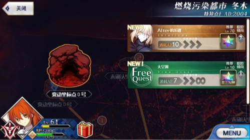 在主界面右侧的几个关卡按钮中,玩家可以进入不同的特异点选择不同关卡进行战斗。每个关卡点首次完全通关后,都会有丰厚奖励赠予各位Master,快带上自己的Servant去战斗吧!