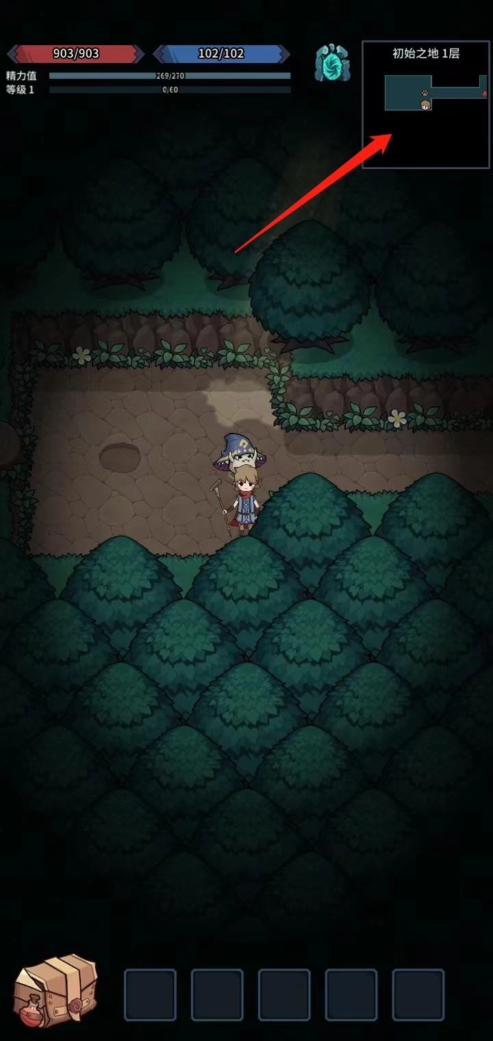 5、接下来玩家就可以开启冒险之旅了;在右上角可以查看自己所处的位置以及怪物所在的位置(红色三角形标记);