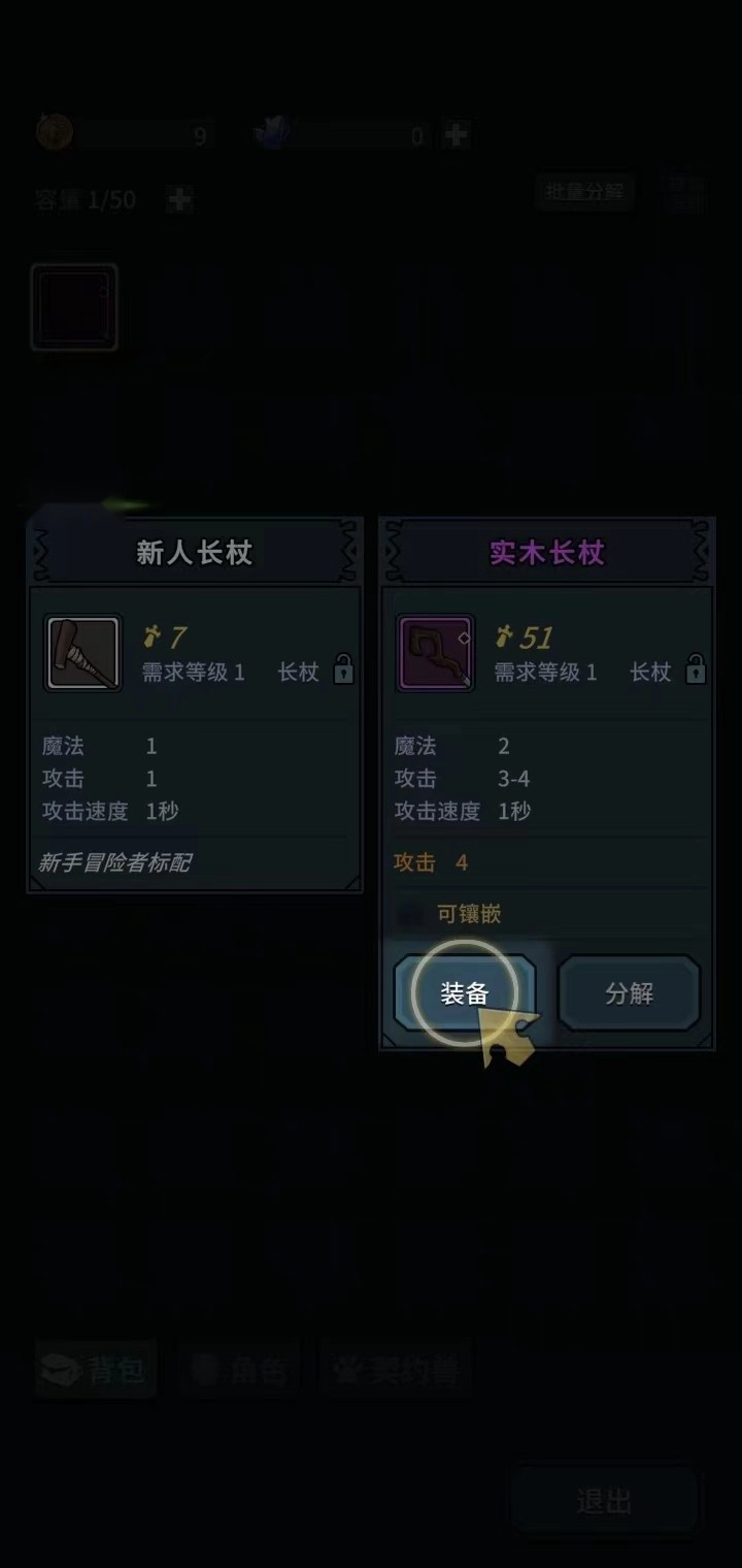 6、当角色靠近怪物时会自动发起攻击,击败怪物后可拾取其随机掉落的装备,装备后能提升角色的攻击力。