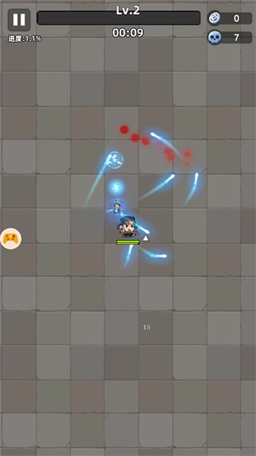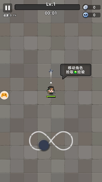 3. 通过滑动屏幕来操控角色移动,拾取绿色丹药以获取经验值,从而提升等级。