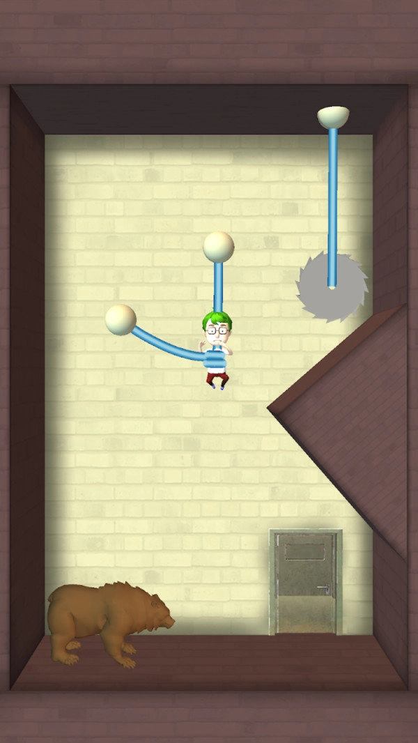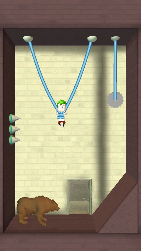 游戏里融入了自由度极高的竞技模式,在没有时间限制的条件下,玩家要怎样才能顺利解救被困住的大头呢?这和玩家每次切割绳子的方式都紧密相关,能否在不伤害大头的前提下把他救出来,是个十分考验玩家思维的问题——毕竟,每个关卡下方都有一头大黑熊守着。