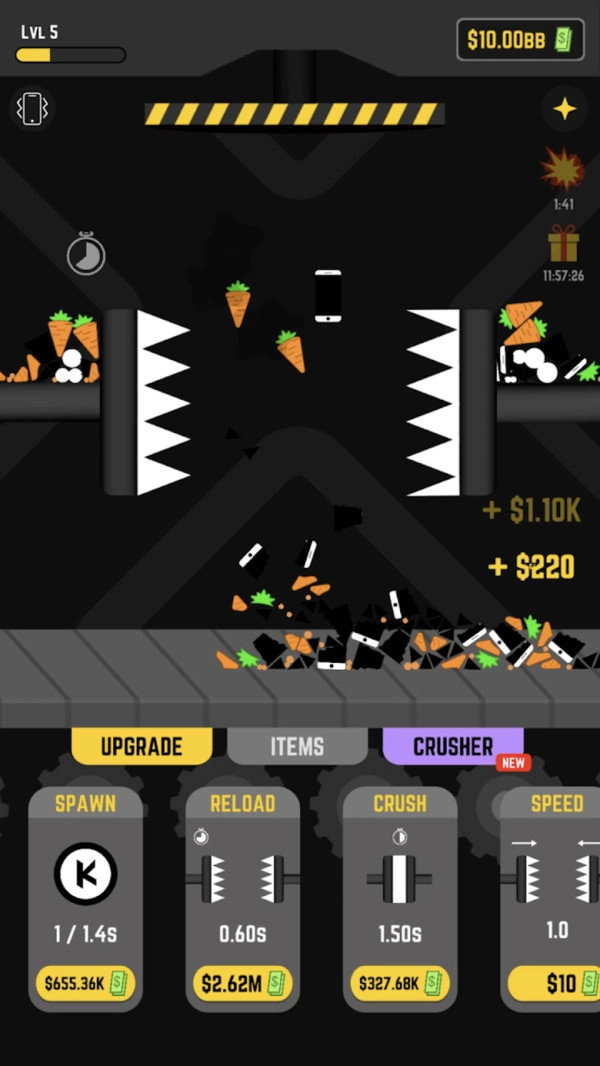 随着你的设备不断升级,其破坏效率也会逐步提高,而赚取金币能够助力你购买所需的工具。